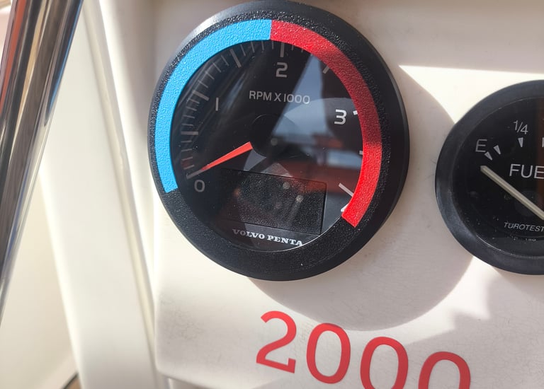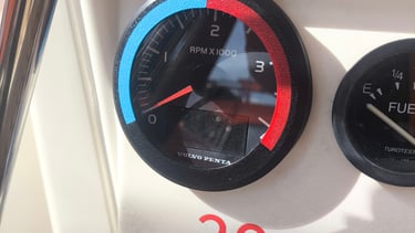 This Volvo Penta tachometer was completely unreadable and useless. I took the unit apart, cut a new Lexan cover and designed a new bezel, with colors to indicate the preferred RPM range.