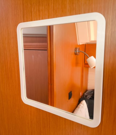 I designed many bezels for mirrors during the past year to cover the filthy edges and ensure the mirror will look as new for the coming years. A cost effective and quick solution for this common problem.