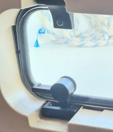 Almost all of the 26 (!) Lewmar window bezels on this 50 foot sail yacht from 1991 were falling apart, brittle and yellow stained due to 30 years of UV exposure. But for these old windows, the correct layout is not available anymore, the new ones are slightly different. So I designed exact duplicates of the three sizes on this yacht and printed these is UV-resistant ASA material for another 30 years of joy on the water.