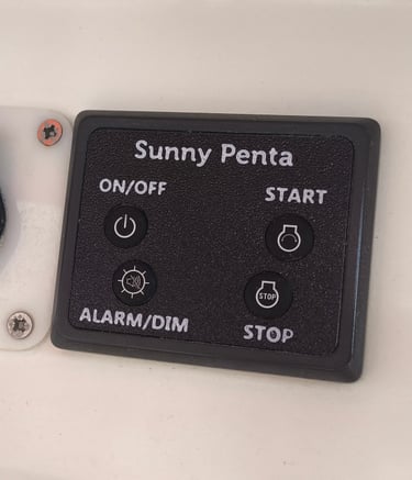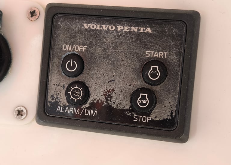 This Volvo Penta engine control unit on a 2019 Bavaria 39 had a worn dirty front cover that could not be refurbished. So I designed a new cover with cutouts for the knobs and text with a wink to the charter company's name ;-).