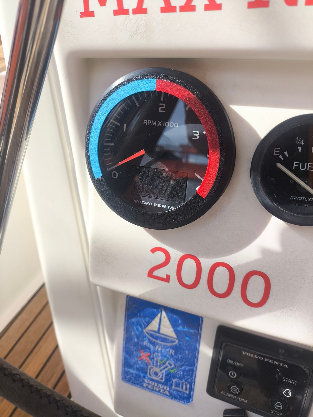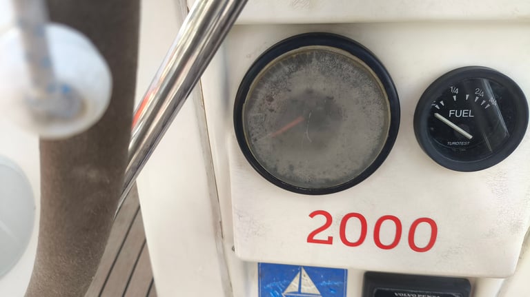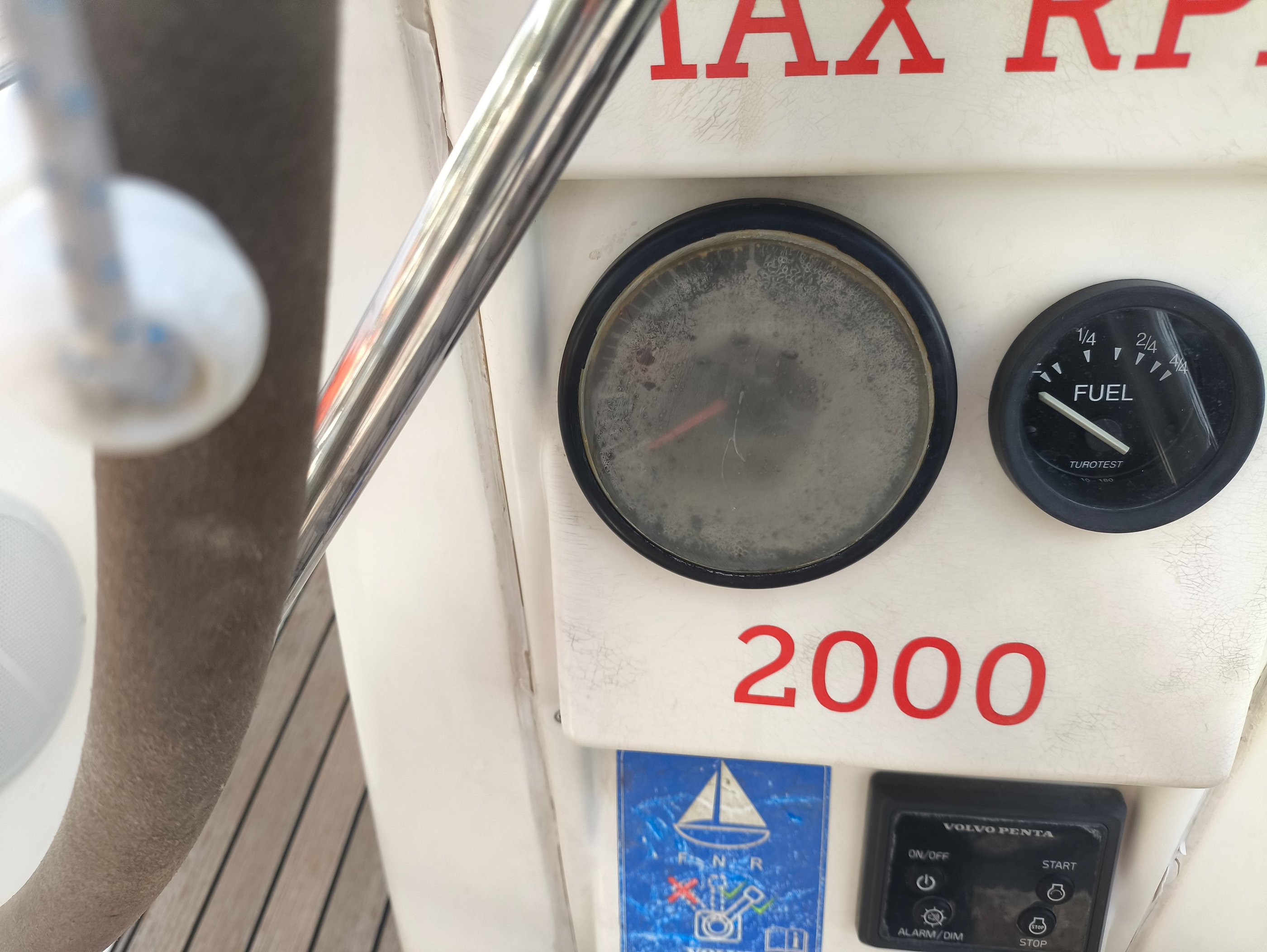 This Volvo Penta tachometer was completely unreadable and useless. I took the unit apart, cut a new Lexan cover and designed a new bezel, with colors to indicate the preferred RPM range.