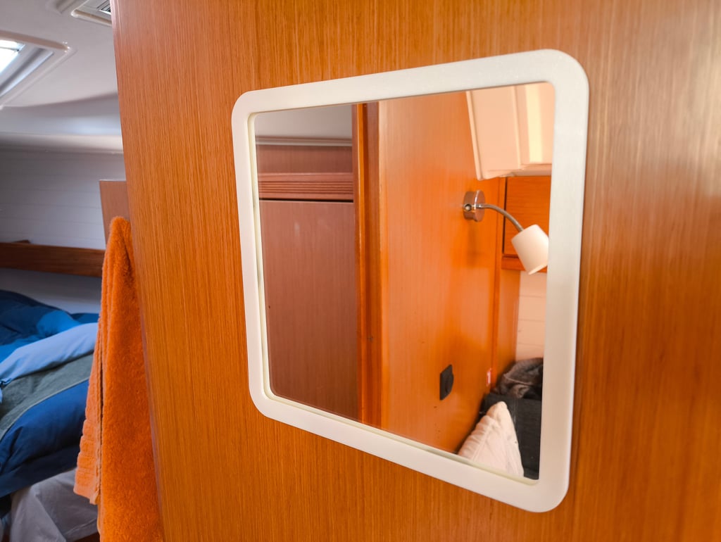 Almost all of the 26 (!) Lewmar window bezels on this 50 foot sail yacht from 1991 were falling apart, brittle and yellow stained due to 30 years of UV exposure. But for these old windows, the correct layout is not available anymore, the new ones are slightly different. So I designed exact duplicates of the three sizes on this yacht and printed these is UV-resistant ASA material for another 30 years of joy on the water.