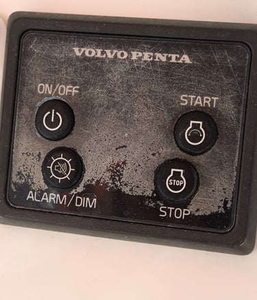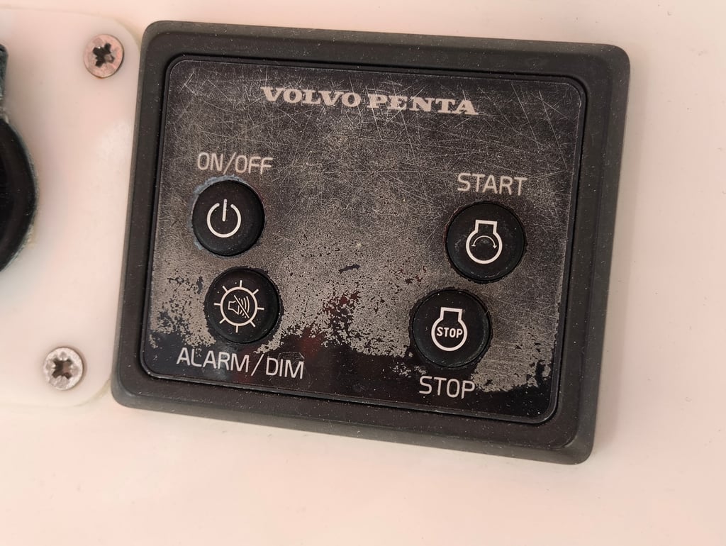 This Volvo Penta engine control unit on a 2019 Bavaria 39 had a worn dirty front cover that could not be refurbished. So I designed a new cover with cutouts for the knobs and text with a wink to the charter company's name ;-).