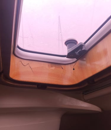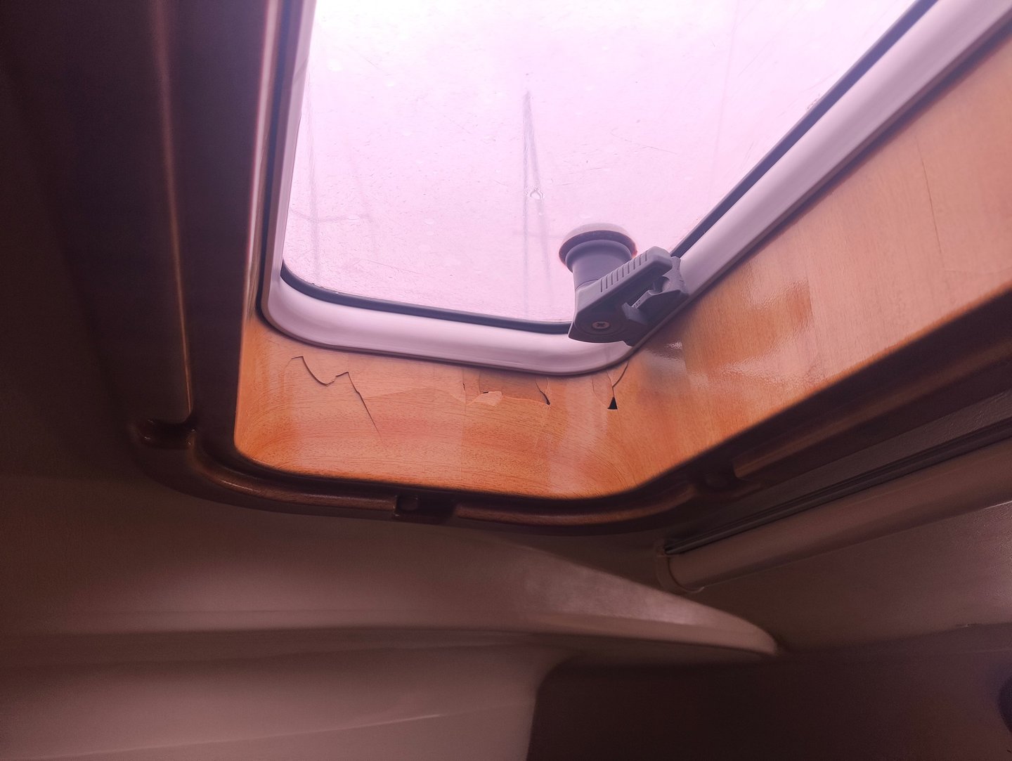 On a 2007 Bavaria 42 the interior is full of fake wood. When new it looks quite nice but the plastic material is not UV resistant. So on this yacht, the deck hatch bezels simply fall apart. The easiest solution was to design thin covers and glue these on the old material. Looks great again and it is ready for many more years of sunlight.