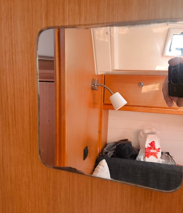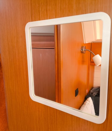 Even on fairly new yachts, the salty moist environment causes the mirror edges to erode. The only option is to replace the mirror, not always easy to remove and fairly expensive.